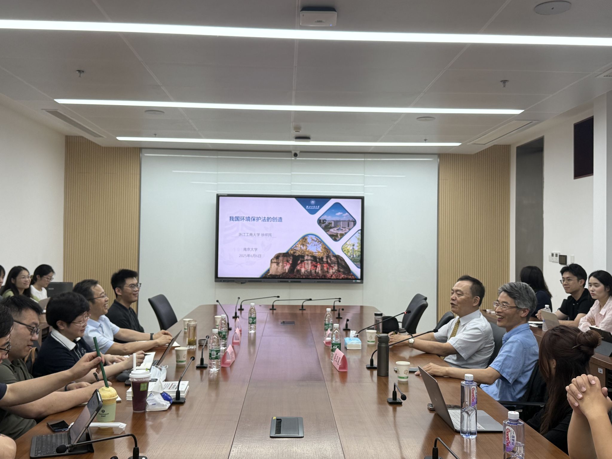2025年6月6日,浙江工商大学特聘教授、中国法学会学术委员会委员、中国法学会环境与资源保护法学研究会副会长徐祥民应邀来南京大学法学院开展“我国环境保护法的创造”专题讲座。本次讲座由南京大学法学院教授吴卫星主持,河海大学法学院教授晋海、南京师范大学法学院副教授章楚加、南京大学法学院助理研究员陈诚担任与谈人,南京大学法学院准聘助理教授、特聘研究员姜秉曦、金健以及来自南京大学、东南大学、河海大学、浙江工商大学、宁波大学等多所高校的三十余名本硕博学生参加了本次讲座。
