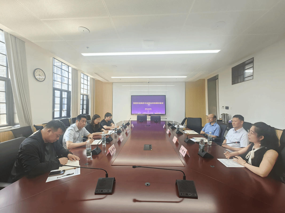 6月17日,南京市法学会专职副会长钱胜春一行访问我院,党委书记蒋恩铭、院长彭岳接待钱会长一行并进行交流座谈。