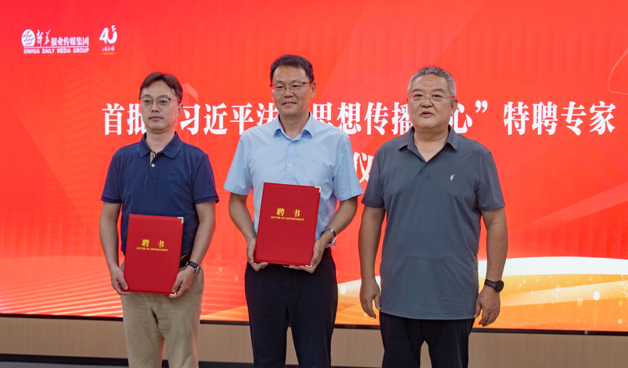 同时,为加强“习近平法治思想传播中心”的智库建设,新华日报社党委委员、副总编辑黄建伟向南京大学法学院院长彭岳教授、副院长刘勇教授、院长助理徐凌波副教授颁发“习近平法治思想传播中心”首批特聘专家聘书。