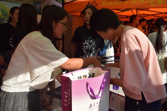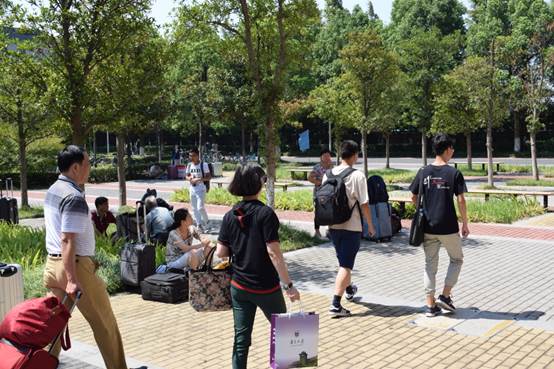 在烈日下,法学院的志愿者学长学姐们依然坚持为新生服务,帮助新生在走完报道注册流程的同时,购买日常生活用品,并搬运物件抵达宿舍。各位新生的家长在感叹南京大学校园的大气、整洁的同时,也为热心服务的法学院志愿者们点赞。
