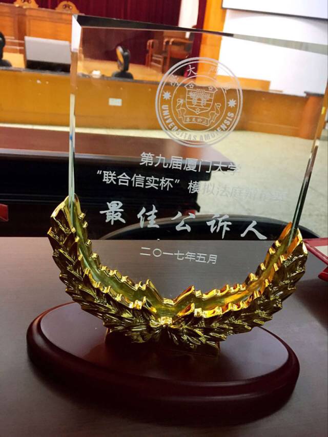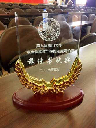 在2017年5月7日举办的第九届厦门大学“联合信实杯”模拟法庭大赛上,南京大学法学院代表队获得了冠军、最佳书状奖。我院15级本科生陈依琳同学凭借出色的表现获得了最佳公诉人奖。本次代表队参赛选手由14、15级本科生陈依琳、张子凡、高超星、钱逸凡、秦嘉伟、王珺洁同学组成,充分展现了南大法学学子的风采与才华。祝贺上述获奖同学!