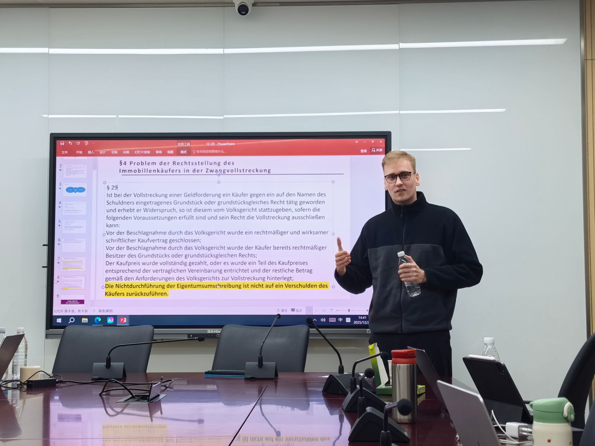 2025年12月20日,中德法学研究所第23期“中德法律比较”研讨课在南京大学鼓楼校区西南楼135会议室举行。中德法学研究所德方副所长Holger Hanisch、中方指导教师徐凌波副教授、蔡琳副教授、助理教授金健老师以及中德法学研究所的2024级研究生共同参与了本次研讨课,研讨课全程用德语进行。