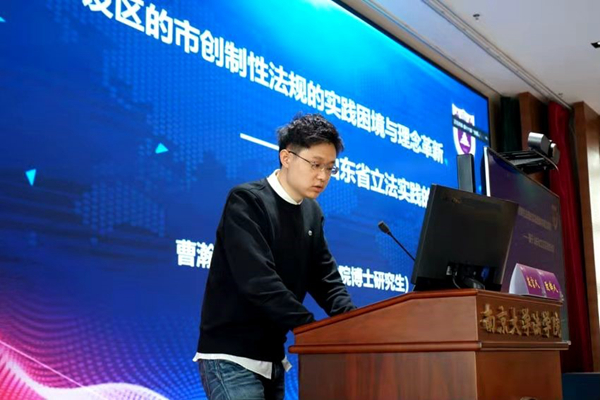 我院刘茜芸博士报告主题为《存在一种区域性法治吗?——对一个新法治概念的质疑》,她认为区域法治与地方法治的概念在理论上难以有效区分,无论是作为分析对象还是分析工具,区域法治的概念均不具备规范性基础。山东大学法学院曹瀚予博士报告主题为《设区的市创制性法规的实践困境与理念革新——基于山东省立法实践的分析》,他认为可以从对“法制统一”内在张力的理解、根据实际需求合理配置立法供给以及正确看待“突破上位法”的合法性三个方面着手,在法理上对立法观念进行革新。武汉大学法学院杨海舟博士报告主题为《社会主义中国语境下的专政与紧急状态:何以区别?如何实践?》,他通过对专政和紧急状态的内涵做比较,去考察二者的异同之处,借以明晰它们之间的相互关系。西南政法大学行政法学院黄鑫博士报告主题为《不变与变:我国监察权发展的新面向》,他认为我国监察权发展的特质渐进明朗,应当坚持监察权的权力监督性质,尊重监察权发展的一般规律。我院刘丽媛博士报告主题为《论单位治理与国家权力的关系》,她认为单位建设在国家政权建设和现代化建设初期做出了重要的贡献,探寻单位治理的历史流变与国家权力关系的逻辑变迁,对研究当代中国的法治困境具有重要的启发意义。湘潭大学法学院硕士研究生熊誉报告主题为《论为他人提供“翻墙”工具行为的定性》,他认为“翻墙”工具的技术原理是通过设立虚拟专用网的方式绕过我国网络监管部门的技术封锁,并未对计算机信息安全造成破坏,应定性为非法经营罪。清华大学法学院王森博士报告主题为《中国古代的法官概念——兼论中国古代基层法官角色的复杂性》,他从分析中国古代法官形象入手,指出法官是一种角色而不是一种职业,这些发现能够为今天的法官及其职业伦理建设提供重要的启发作用。