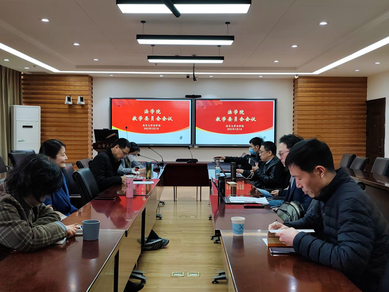 2023年3月5日,南京大学法学院召开教学委员会会议,会议结合《关于加强新时代法学教育和法学理论研究的意见》中关于完善法学教育体系等方面的要求,梳理法学院学科建设的现状与不足,明确下一步学科建设的具体方向。彭岳院长对学院学科建设提出以下几点要求:一是要坚持思想引领,坚定正确的政治方向不动摇。二是要在推动法学教育和法学研究发展上再发力。要紧紧围绕中国法治实践的发展需求,积极贡献法学教育方面的南大智慧和南大力量,积极支持西部地区法学院校发展。三是要在完善法学教育体系方面再提升,在优化学科体系、健全教学体系、完善教材体系和加强法治教师队伍建设方面永不松懈,尤其在人才引进、青年教师引育方面要再做工作。四是要在学院法学理论研究体系方面再突破,进一步做好习近平法治思想概论等思政课程的建设,要鼓励和引导学院教师在思政育人方面争先创优,争当先锋。