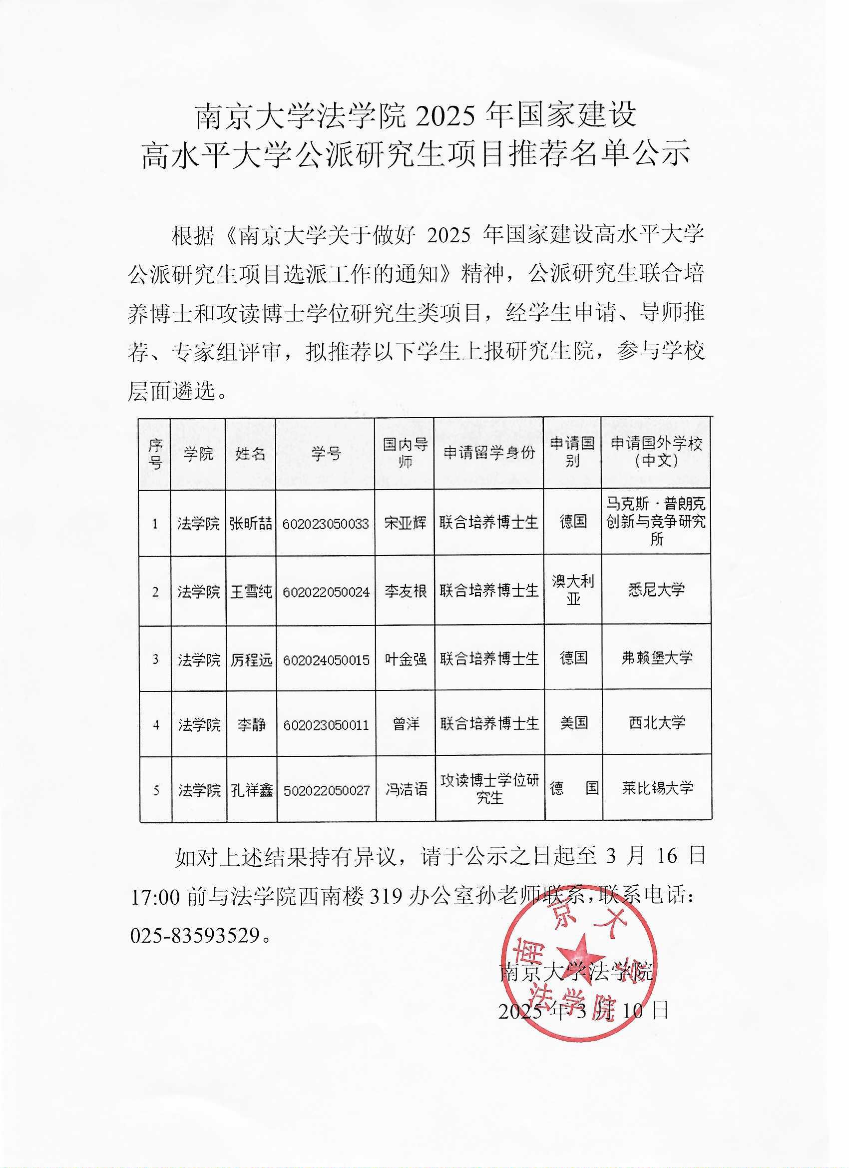上一篇:南京大学法学院关于公布申请免初试攻读我院 2025年硕士研究生考生名单的通知