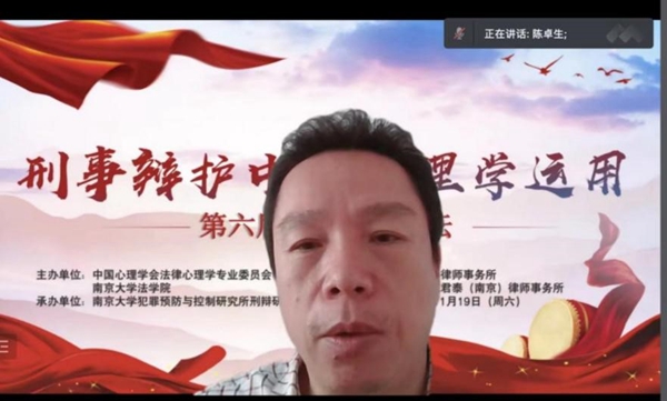 2022年11月19日,第六届刑辩经纬论坛在南京大学法学院1101报告厅成功举办。本届论坛由中国心理学会法律心理学专业委员会、南京大学法学院主办,江苏瑞格律师事务所、北京天驰君泰(南京)律师事务所协办,南京大学犯罪预防与控制研究所刑事辩护研究中心承办。论坛主题为“刑事辩护中的心理学运用”,线上与线下共有百余名学者、法官、检察官、企业家、律师以及学生参加。