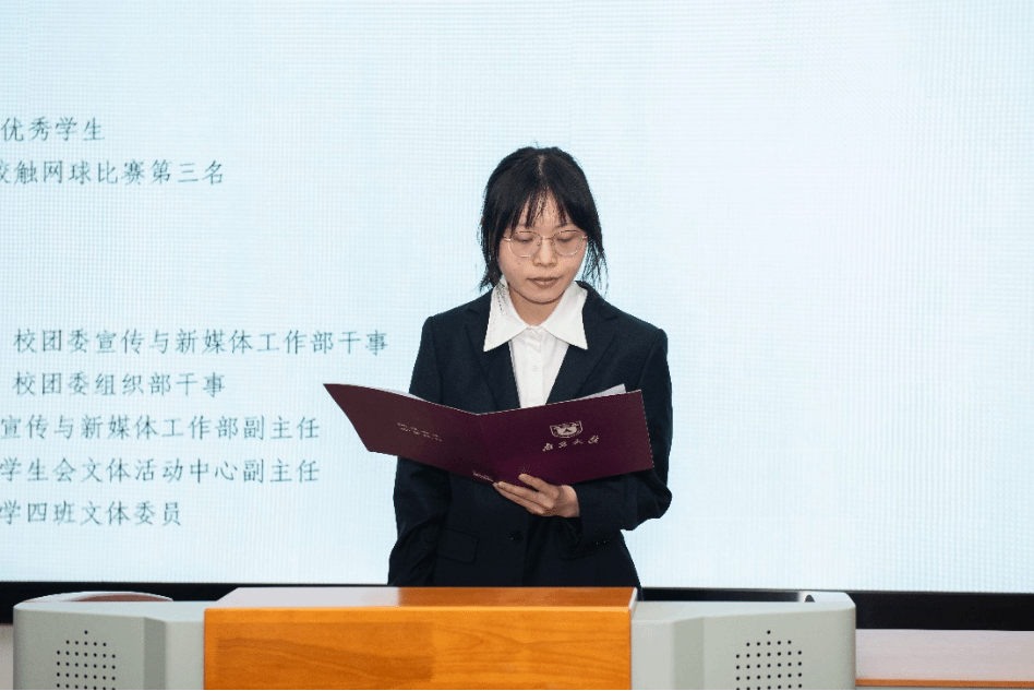 学生会执行主席陈星潼同学在会议上代表学生会作2024-2025学年工作报告。报告系统总结了本学年学生会各项工作进展与取得的阶段性成果,并从多维度分析了学生会工作开展的科学路径与优化方向,彰显了学生会持续深化改革创新、推动工作提质增效的坚定信心与决心。