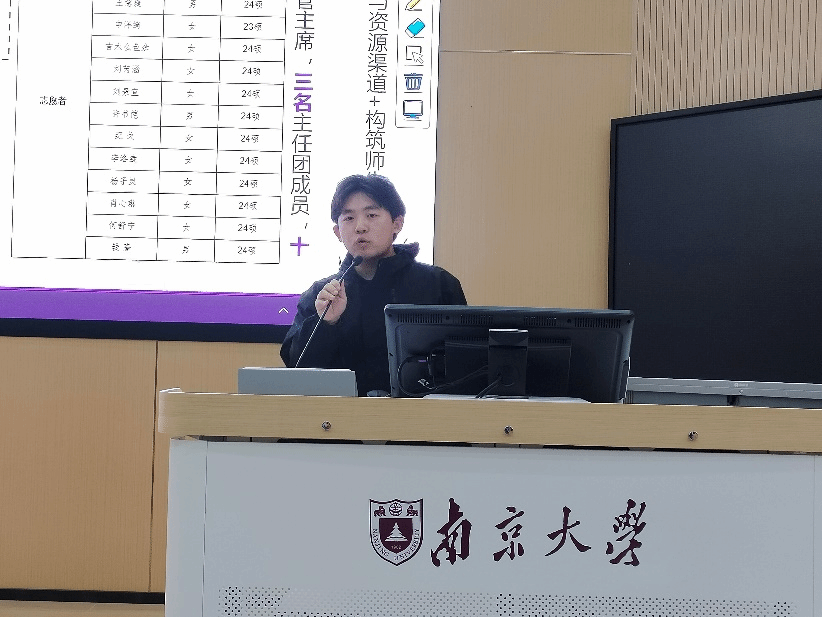 朱蕾同学总结以往工作经验,为未来研会的工作描绘了蓝图。提出要加强理论学习、高举理论旗帜,把握活动窗口自觉加强政治引领。在研会的结构上,力争实现人数做减法、能力做加法、效果做乘法,加强制度建设,让研会更“稳”。在研会的工作上,要求坚持“全心全意为同学服务”的宗旨,用心开展各种活动,让学生工作更“暖”。展望未来,朱蕾同学提出要坚持加强内部建设,力求建立健全研会评价体系;坚持院校协作,整合研会资源;建设多元化、服务型新法研,服务同学切身需求;为加快建设“第一个南大”贡献力量。