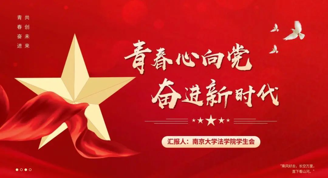 青春百廿,红心向党。青年应以青春之我、奋斗之我,攀登高峰,追求卓越,肩扛重任,奉献青春。作为一名合格的、诚朴雄伟的南大法科人,应当立下鸿鹄壮志,怀抱奋斗之心,向成为一名“爱国、励志、求真、力行”的青年不断努力,为建设“第一个南大”贡献力量,为实现中国梦的新辉煌添砖加瓦。