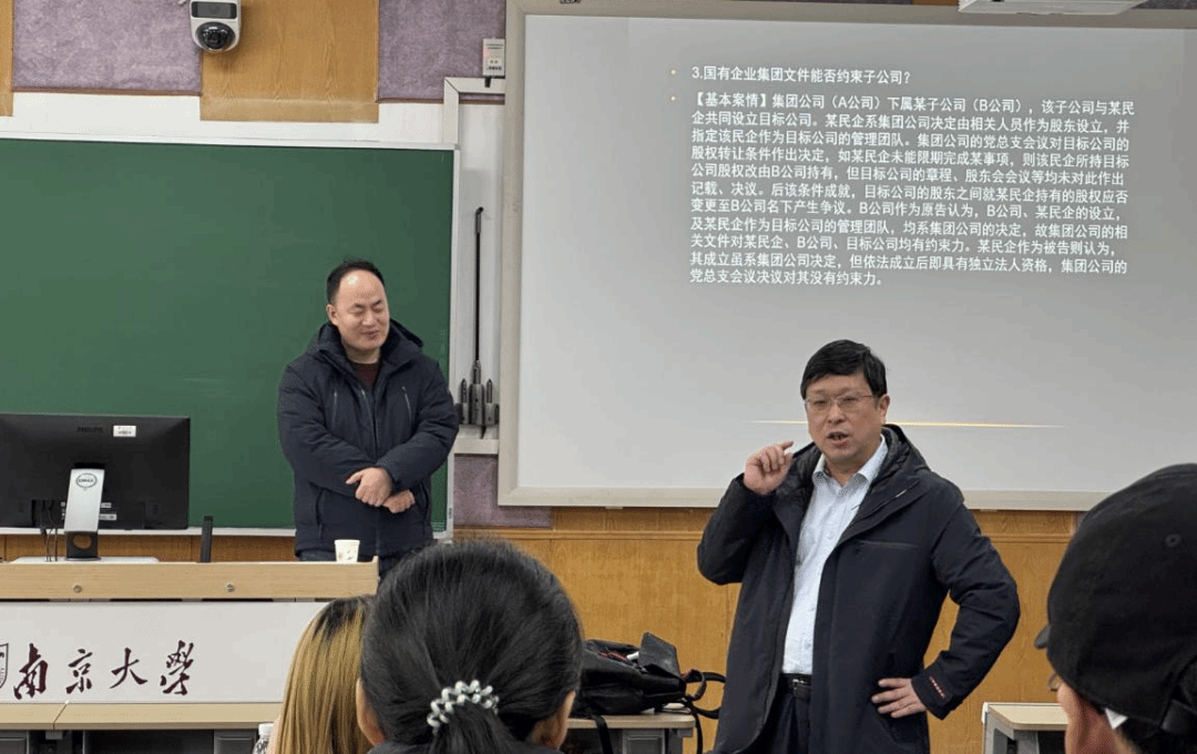 单锋教授主持,南京市中级人民法院民二庭副庭长程俊杰法官担任主讲嘉宾。程法官就《商事交易的法律风险防范》进行了专题分享,通过剖析商事合同与公司纠纷的典型案例,深入解析了商事实务中需注意的合同主体、标的、价款等问题,为同学们带来一场知识与智慧的盛宴。