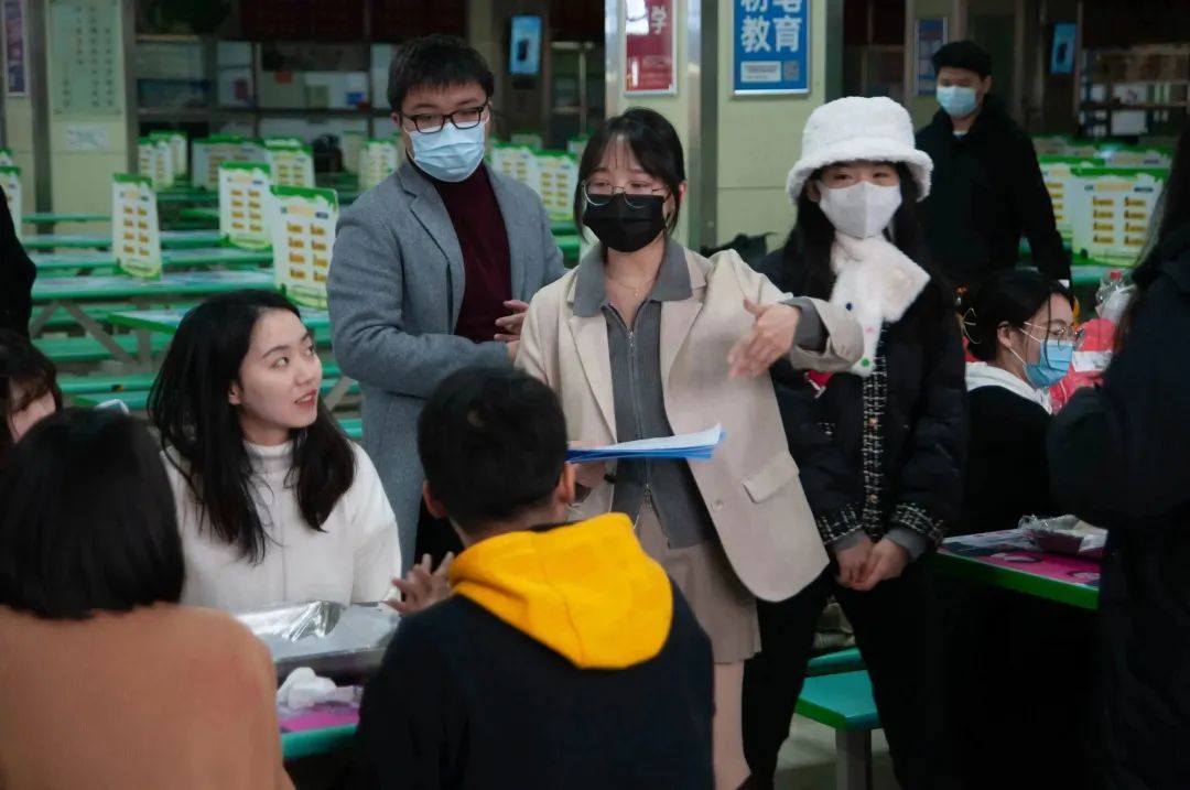 师生陆续到场,活动于下午三点半正式拉开序幕。参赛成员自动组队,五人一组,共组成五支参赛队伍。本次包饺子活动分为三个环节,分别是①蒙眼包饺子②计时包饺子和③大胃王比赛。活动采取累计得分的方式对参赛队伍进行排名,并设置一、二、三等奖。