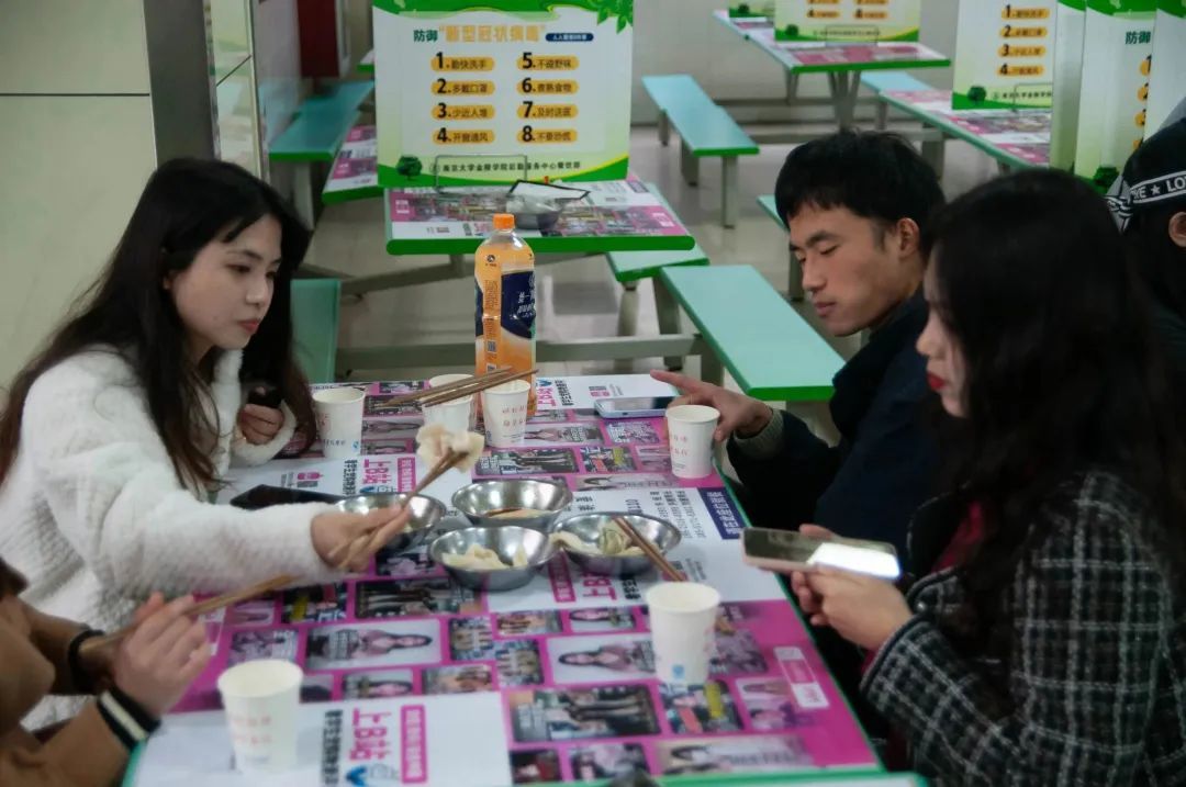 师生围坐桌前,品尝自己亲手包的饺子,一颗颗真挚的心在集体中感受温暖,欢声笑语、其乐融融。