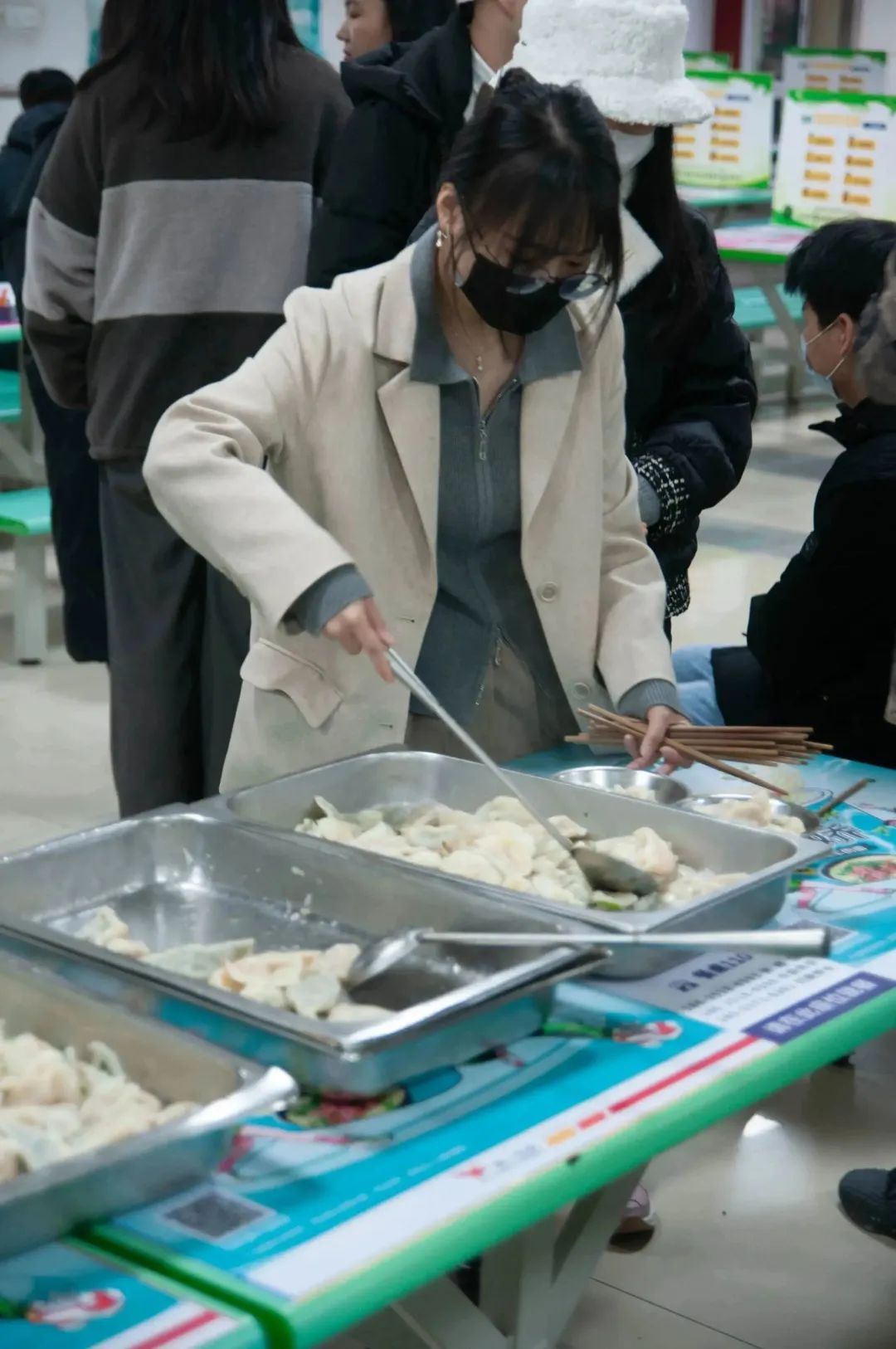 包饺子环节结束后,同学们将饺子送去下锅。不一会儿,第一批热腾腾的饺子出锅了,形态各异、白白胖胖、有模有样,同学们一个个都迫不及待挑出自己的杰作,并尽情品尝一番。别急!咱们这一锅饺子可是大胃王们的“特供福利”呢!