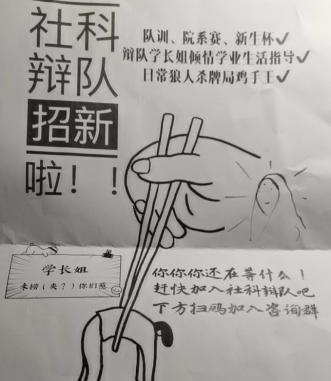 A:我进辩队是因为学长军训刷楼时发的宣传单了。上面有一些看起来不错的福利,比如狼人杀、学业生活指导之类的。我高中接触过辩论,再加上宣传单做得也蛮有趣,就抱着试一试的心态加入了。后来台湾av影片