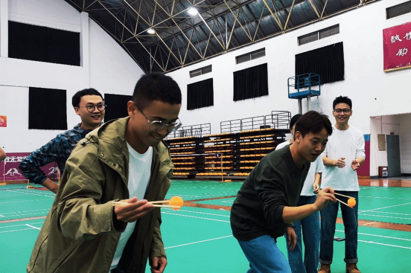 然后进行的是“羽毛球趣味赛”和“筷子夹球”,这两个项目主要考验参赛者对于力量的精准把控,尤其是羽毛球趣味赛,参赛者要站在固定位置,向十米外的筐中击球,比赛持续一分钟,最终比拼击入的羽毛球数量。在这一过程中,同学们如履薄冰,生怕把握不好力量把羽毛球打飞,但有时又会因为力气太小而距离不够,一群人被羽毛球“戏耍”,让人捧腹大笑。