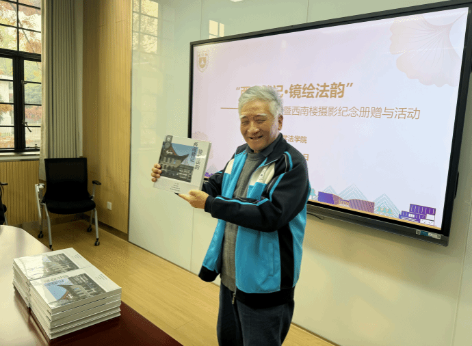 活动现场,遇苏向离退休教师代表和中青年在职教师代表颁发“西南楼记·镜绘法韵”摄影大赛作品纪念册。该影集收录了来自台湾av影片