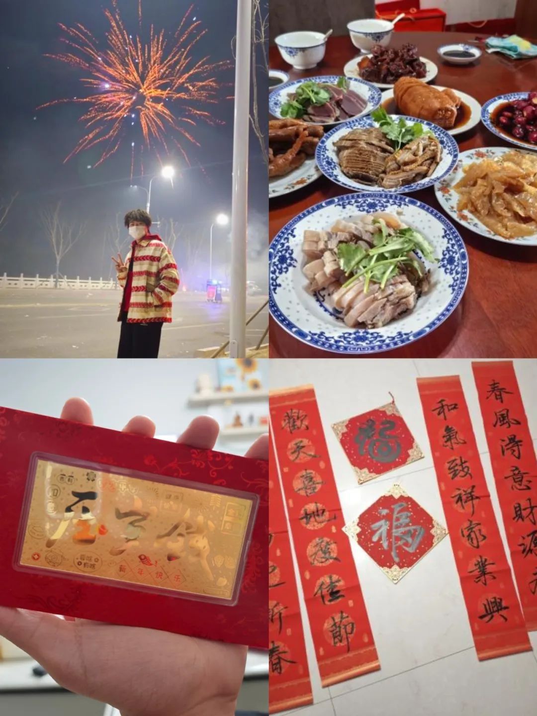 年味打卡活动更是唤起了大家对传统节日的美好记忆。写春联、吃团圆饭、放烟花,收压岁钱,同学们用镜头记录下这些充满年味的瞬间。一幅幅寓意吉祥的春联,一只只包得圆润饱满的饺子,无不展现着春节的欢乐与祥和。