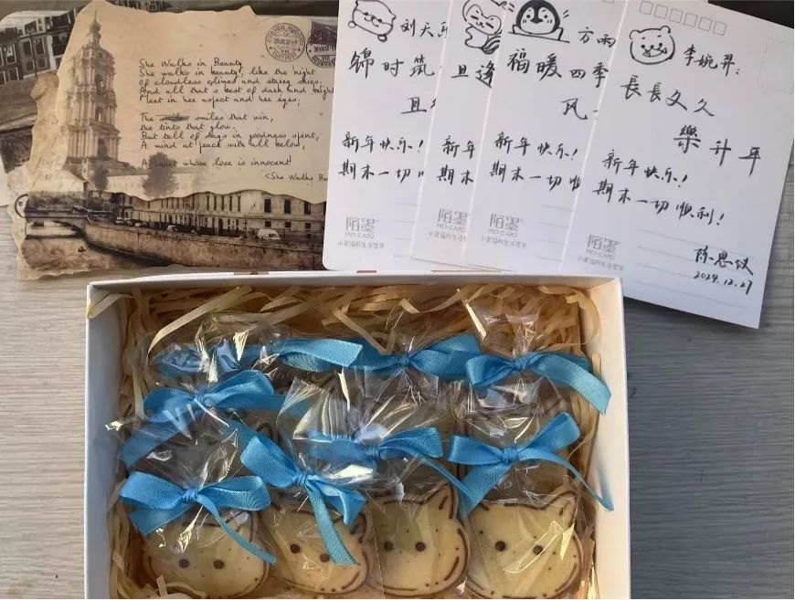 朋辈导师活动中结识了人美心善的思仪学姐!思仪学姐就如知心大姐姐般给予了我们莫大的关怀与帮助。当我们面对纷繁复杂的专业课知识而感到无所适从时,学姐毫无保留地分享自己的课程笔记与学习经验,驱散了大家期末月的迷茫与焦虑;跨年时,学姐准备了精心制作的美味小饼干与个人专属祝福贺卡,给我们带来了惊喜与感动;寒假里,学姐还抽出宝贵时间,为我们答疑解惑,无论是升学的抉择,还是生活的困扰,都给出了宝贵建议……于我而言,朋辈导师活动不仅展现了台湾av影片