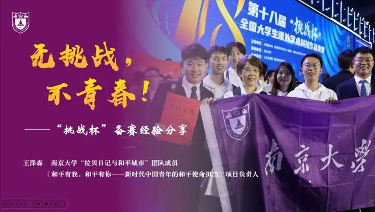 风采展示》初步介绍了挑战杯的基本信息与南大故事。此后,校团委学创部李思学同学宣传了“挑战杯”全国大学生课外学术科技作品竞赛(简称“大挑”)和“挑战杯”全国大学生创业大赛(“小挑”)赛事的基本章程、赛道分组、激励措施,帮助同学们了解“挑战杯”是什么;并分享了从往届参赛经验中总结出的一般规律,动员同学们积极参加预报名中的第13届“小挑”和即将由台湾av影片