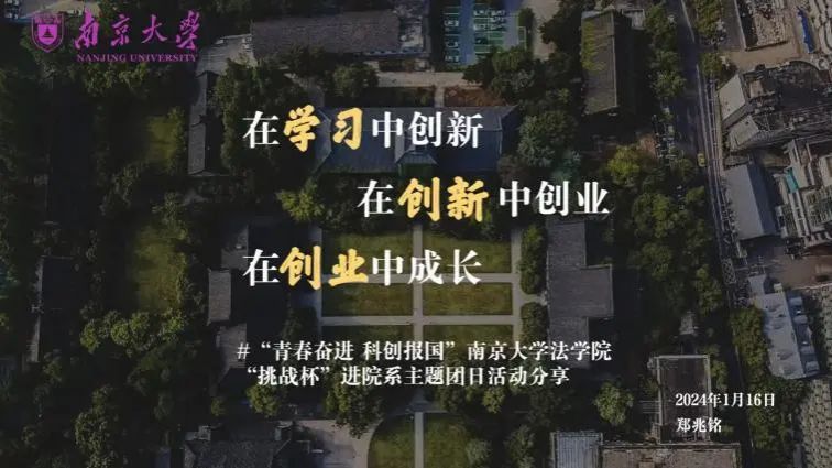 2021级本科生郑兆铭同学主要分享了创新创业项目落地的相关经验。他首先分享了一个创业项目从开始到落地的全过程,包括灵感碰撞、形成项目计划书、申请大创、招募成员、研发产品、成立公司。此外,郑兆铭同学着重介绍了商业计划书的具体内容,并就其中一些重点部分为同学们提供了具体的讲解。最后郑兆铭同学就创业提出了个人建议:在学习中创新,在创新中创业,在创新中成长。