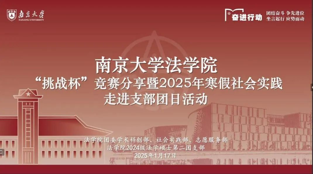 团委在线上举办“挑战杯”竞赛暨2025年寒假社会实践经验分享活动。本次活动由院团委学术科创部、社会实践部、志愿服务部承办,2024级法学硕士第二团支部协办。