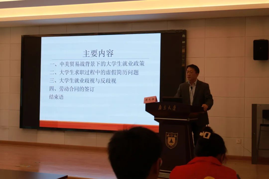 周长征老师作为分享嘉宾,围绕当前就业形势下的大学生职业规划思路以及就业过程中的法律实务问题展开深度解析。