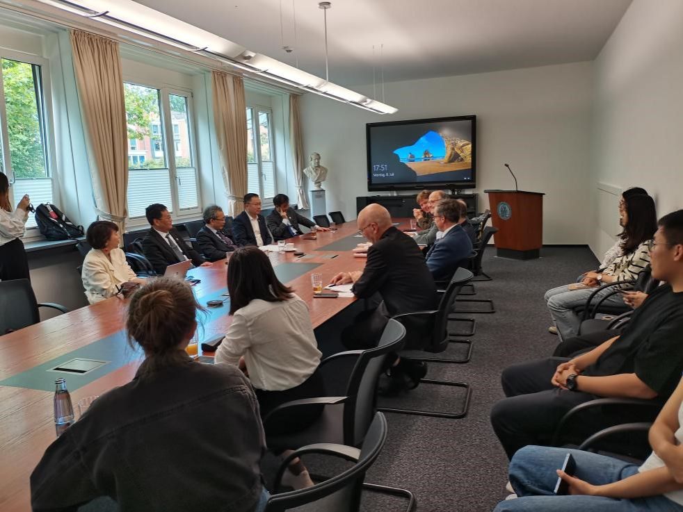 2024年7月8日,为深入贯彻落实习近平总书记给我校留学归国青年学者重要回信精神,落实中德两国国家领导人重要共识,南京大学校长、中国科学院院士谈哲敏率团访问我校全球战略合作伙伴德国哥廷根大学,就两校进一步加强合作事宜举行双边会谈,并专程参访了哥廷根大学中德法学研究所,与在所的中德学生进行了亲切的交流。