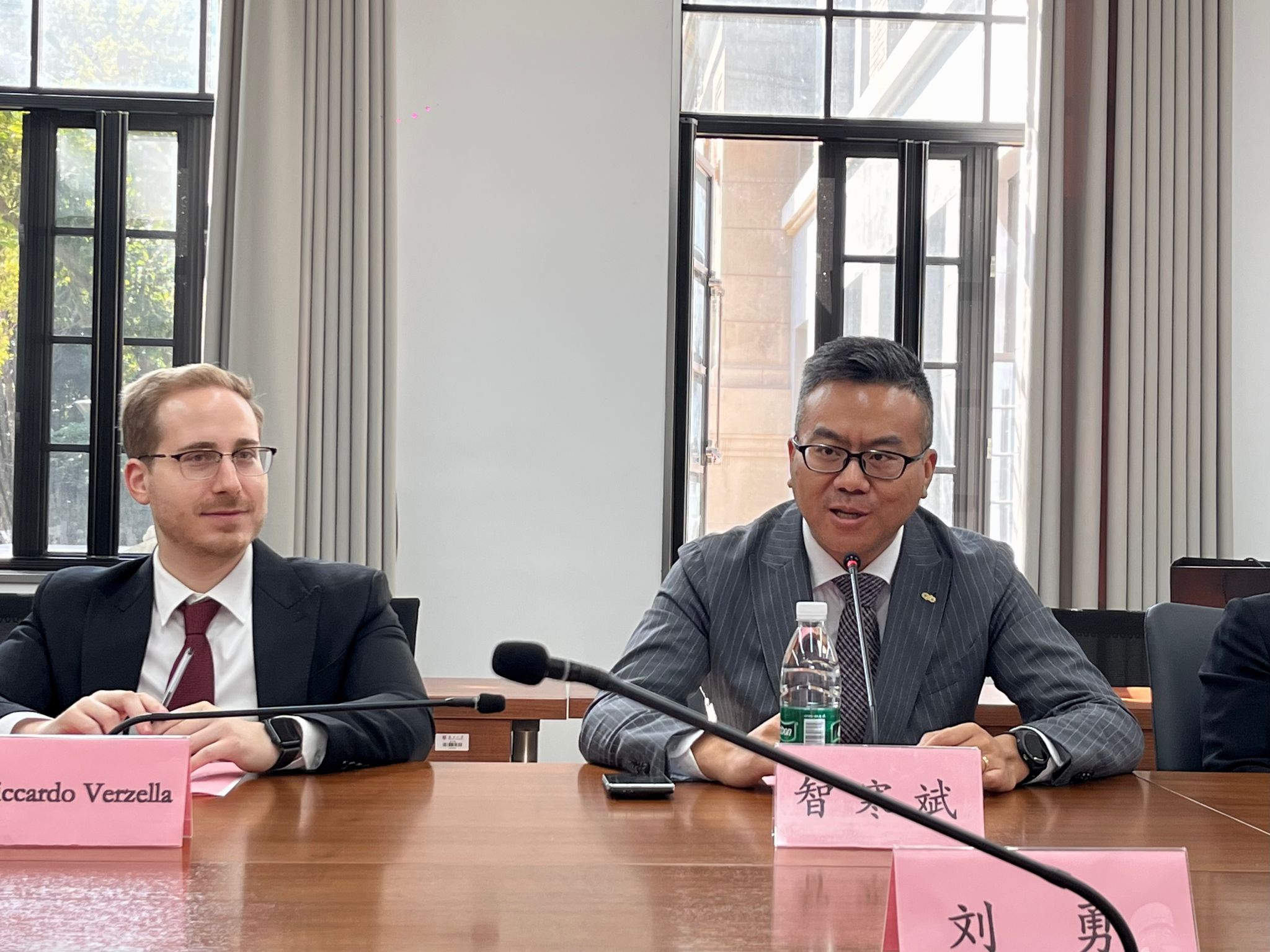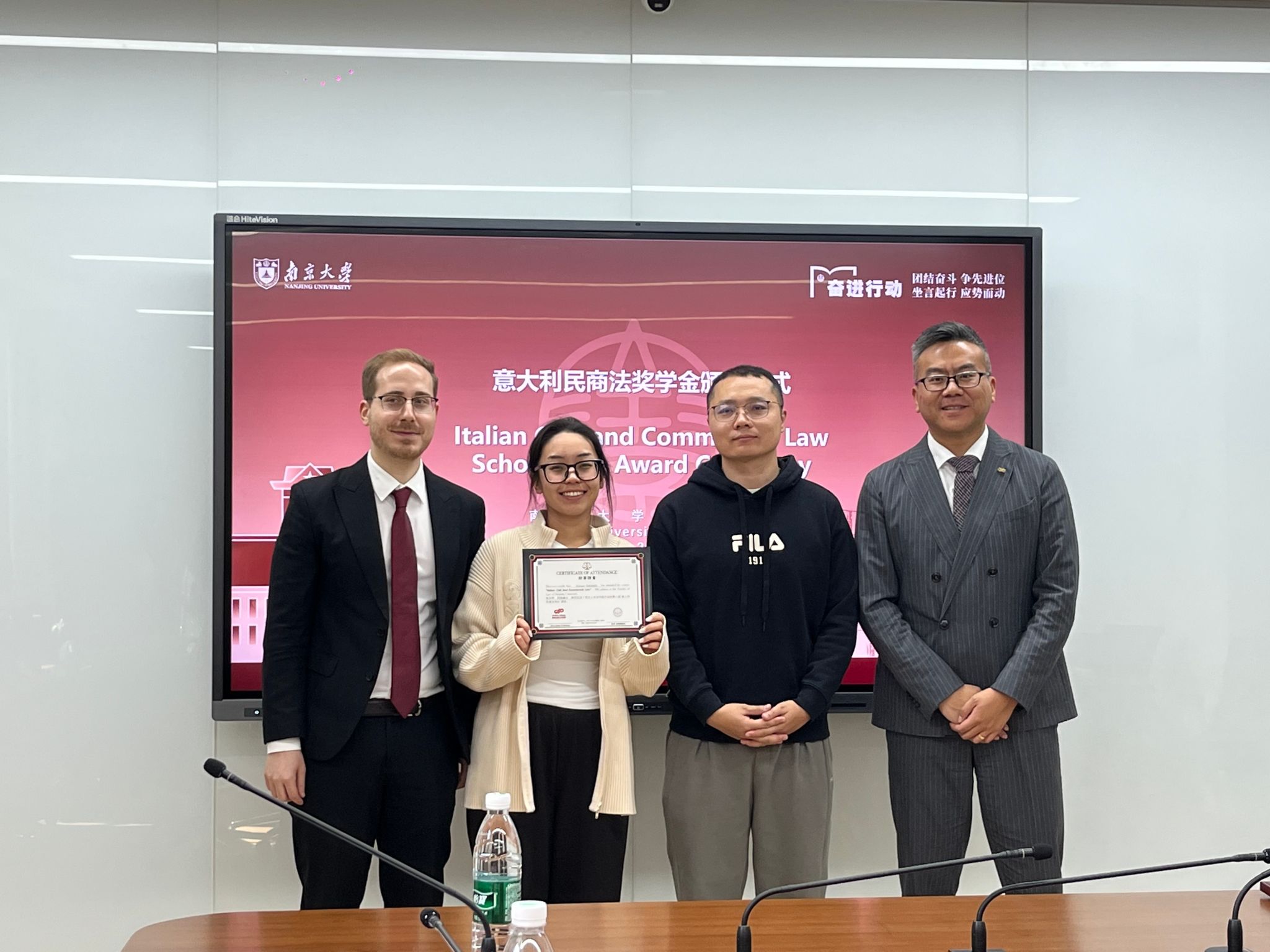 在颁奖环节,智寒斌律师、Riccardo Verzella律师与刘勇副院长共同为获奖学生颁发荣誉证书,以表彰她们在课程中的不懈努力与卓越表现。