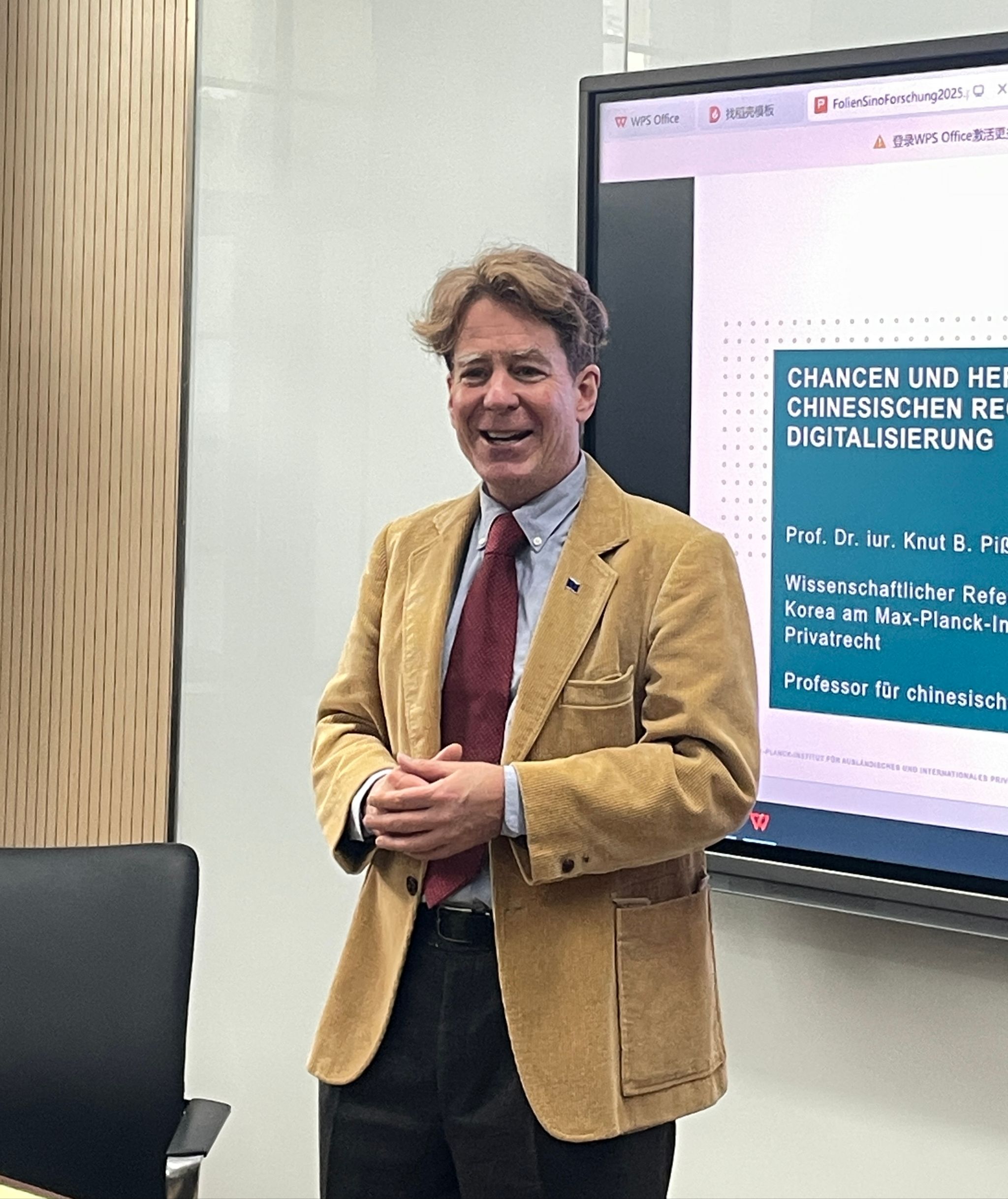 2025年11月11日,应台湾av影片 中德法学研究所邀请,德国哥廷根大学法律系教授、马克斯-普朗克外国私法与国际私法研究所中国法项目负责人Knut Benjamin Pissler以《数字化时代中德法律研究的机遇与挑战》为题,为第175期“中德法学论坛”做学术讲座。