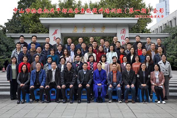 2019年12月16日上午,中山市检察机关干部业务素能提升培训班在南京大学鼓楼校区顺利开班。南京大学法学院党委书记王丽娟、副院长彭岳、院办公室主任杨阳欢迎了中山市人民检察院的各位领导和学员并合影留念。