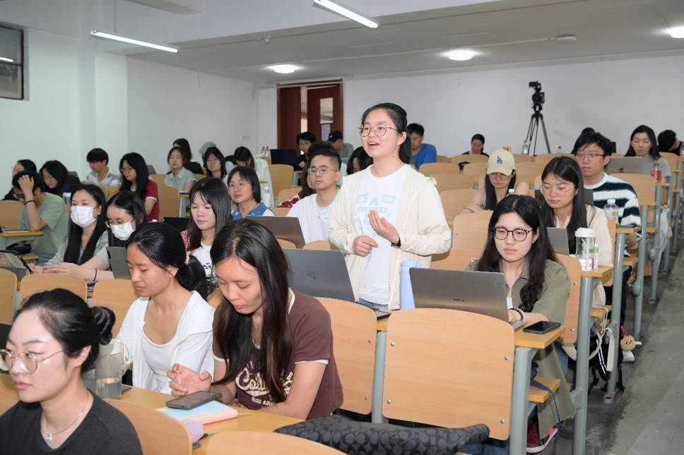 提问环节,同学们围绕从细节着手的专业审判能力、投资者受损赔偿责任比例的考虑因素以及上海金融法院案例测试机制的约束力等方面与符法官进行了深入交流。