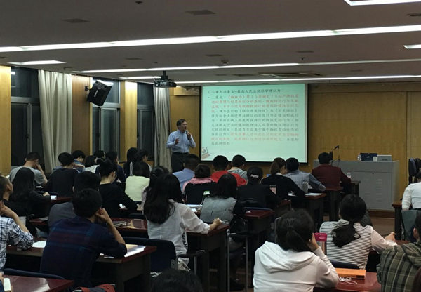 在讲座中,陈荣传教授从最典型的案例入手,结合海峡两岸对同一问题的潜在分歧,生动而又详细阐述了自己的理论见解。陈教授不仅对台湾地区最高法院的诸多重要判决信手拈来,其对大陆法的熟知程度也让在场师生纷纷惊叹。他还特别强调,作为法学院的学生,永远不能忽视基础理论的重要性,只有牢固掌握法学知识体系中最恒定的那一部分,方能真正做到历久弥新、触类旁通。陈教授的讲演风格儒雅幽默,并善于启发听众思考。其通过一系列的中外案例分析,以及法条对比的适时穿插,成功引起了在场听众的浓厚兴趣,也刷新了大家对这些常见理论问题的认知层次。