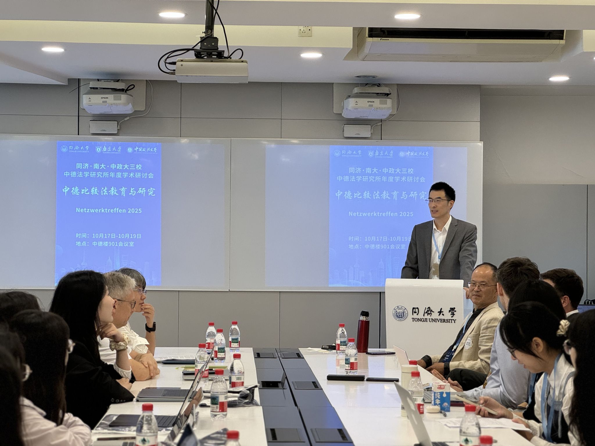 10月18日上午,2025年同济·南大·中政大三校中的法学研究所年度学术讨论会在同济大学四平路校区中德楼拉开帷幕。本次学术研讨会由同济大学中德国际经济法研究所德方所长Sven Klose主持。