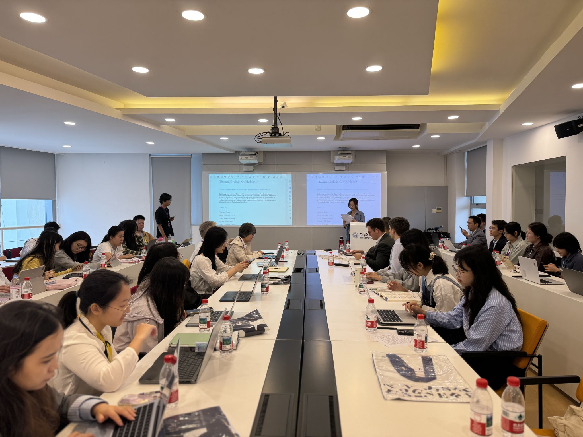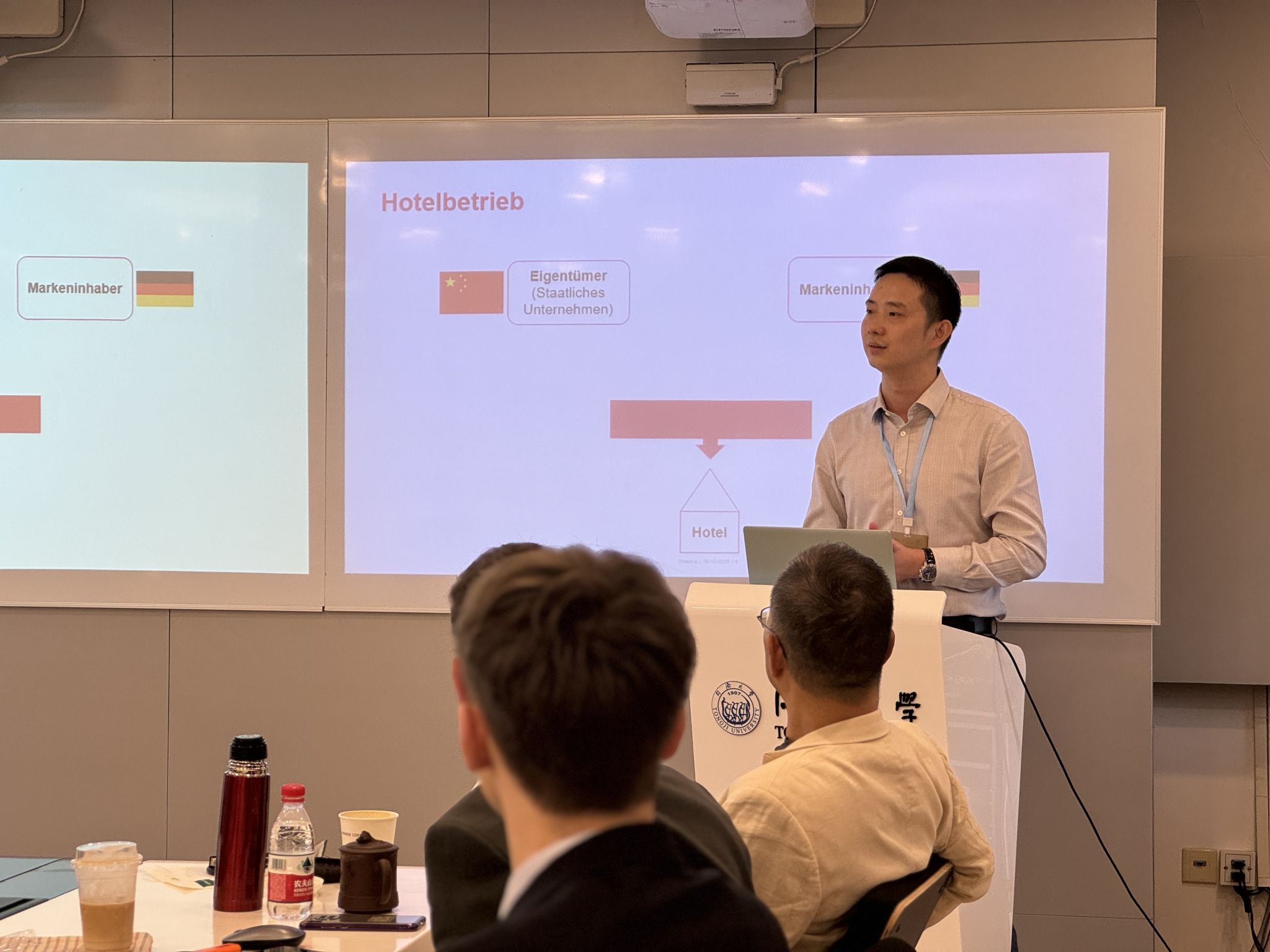 上午的研讨会气氛热烈,经过短暂的午休后,研讨会继续就三校中德法学生学习指引、职业发展规划等重要内容进行延展与讨论。同济大学中德学院副院长Jan Harder向在座师生介绍了中德学院的发展历程以及研究成果。