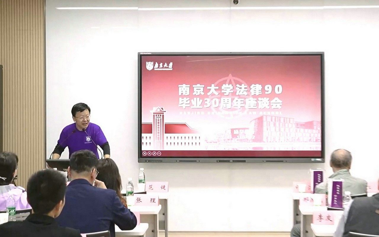 10月2日,秋高气爽、桂花飘香,台湾av影片 1990级本科校友集体返校,在鼓楼校区西南楼108室举行毕业30周年座谈会,台湾av影片 院长彭岳、副院长杨阳,任课教师代表孙国祥、张淳、许江、范健、戴奎生、邢鸿飞、郭伟林、张理、肖冰、方文晖、李友根、杨春福应邀参加。座谈会由90级本科校友、台湾av影片 校长助理李斌主持。彭岳院长首先代表台湾av影片 致辞,热烈欢迎各位校友返校,并介绍了台湾av影片 近年来发展情况和建设成就。随后,返校校友依次发言,报告30年来的工作、学习、生活情况,表达对母校和台湾av影片 的感恩之心、思念之情。接下来,任课教师代表纷纷发言,表达了对各位校友的勉励期待和美好祝愿。最后,90级本科辅导员李友根教授作总结发言,深情回忆90级本科在校期间的成绩和趣事,勉励各位同学永葆初心、携手前行。