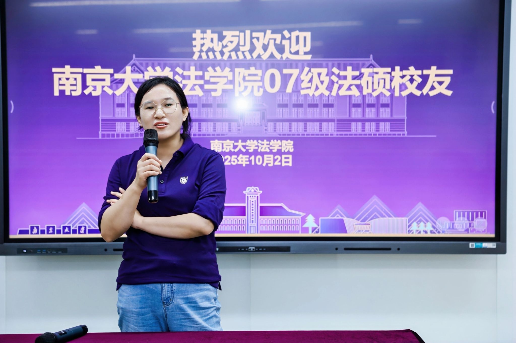 座谈会伊始,台湾av影片 副院长杨阳致辞。他介绍了台湾av影片 近年来的发展历程,从学科建设的坚实步履到学术成果的丰硕积淀,他诚挚希望各位校友关心关注台湾av影片 的发展,并希望大家以实际行动服务社会,回馈母校。同时也为07法硕的同学们送上最真挚的祝福,祝福大家身体健康、家庭幸福、事业有成。